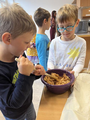 Mit einem traditionellen Gericht, dem Strudel, beendete die 1b Klasse das Thema "Apfel".