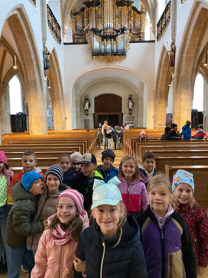 Die Freistädter Orgel hat unglaubliche 1750 Pfeifen und hat die Kinder sehr beeindruckt. Während oben gespielt wurde, konnte unten nicht nur zugehört, sondern über eine Leinwand auch zugesehen werden. Da wurde auch klar, was es heißt, wenn verschiedene "Register" gezogen werden. Spannend war es, zu sehen, dass die Finger über dieselben Tasten tanzten, der Ton aber ganz anders klang.